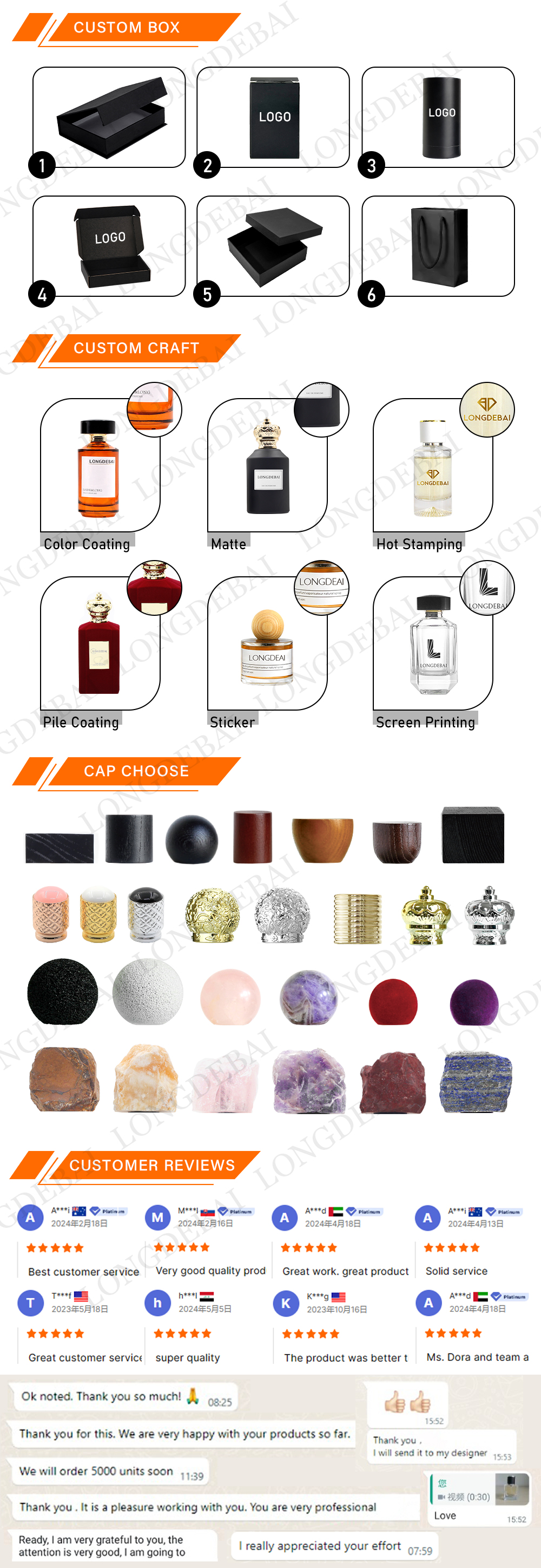 1)Simple And Convenient:Easy to use, no leakage. 2)Made in China. 3)Quality assurance: perfume glass bottle is durable and will not corrode or leak. 4)Multiple styles: There are hundreds of glass bottle styles for you to choose from, and you can also customize colors and logos. 5)Glass bottle body material, fine texture, durable, not change scent of perfume. 6)Elegant fine mist atomizer for perfume, with handsome glass cap and fine mist sprayer.